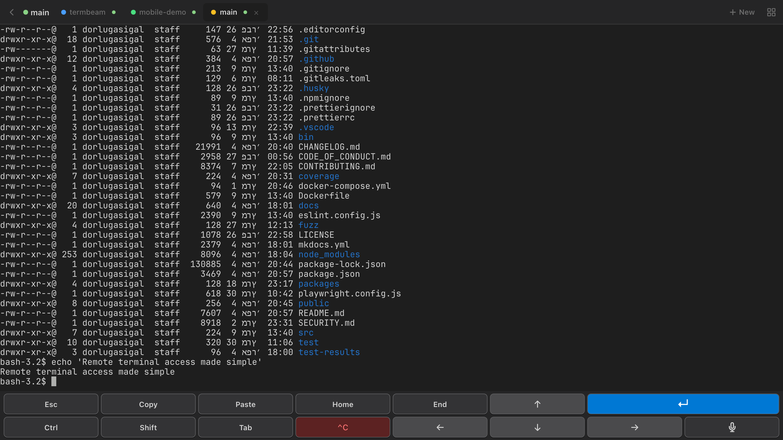 A full terminal in your browser — with touch bar, tabs, file browser, and everything you need.